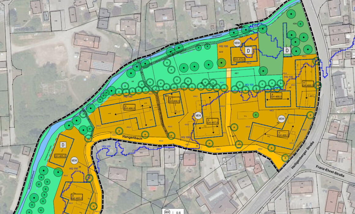 Im südlichen Siedlungsbereich wird die kleinteilige Struktur der angrenzenden Bestandsbebauung aufgenommen und fortgeführt. Hier sind die geforderten freistehenden Einfamilienhäuser und verdichtete Formen der Einfamilienhausbebauung vorgesehen. Die drei Stadtbaufelder werden durch einen multifunktionalen Grünraum zu einem Stadtquartier zusammengebunden, über den auch die freiräumliche Vernetzung und Anbindung des Landschaftsraumes, des Kurparkes und der bestehenden Stadtgebiete erfolgt.